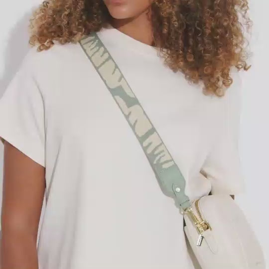 Katie Loxton Abstract Canvas Bag Strap in Seafoam Green and Ivory