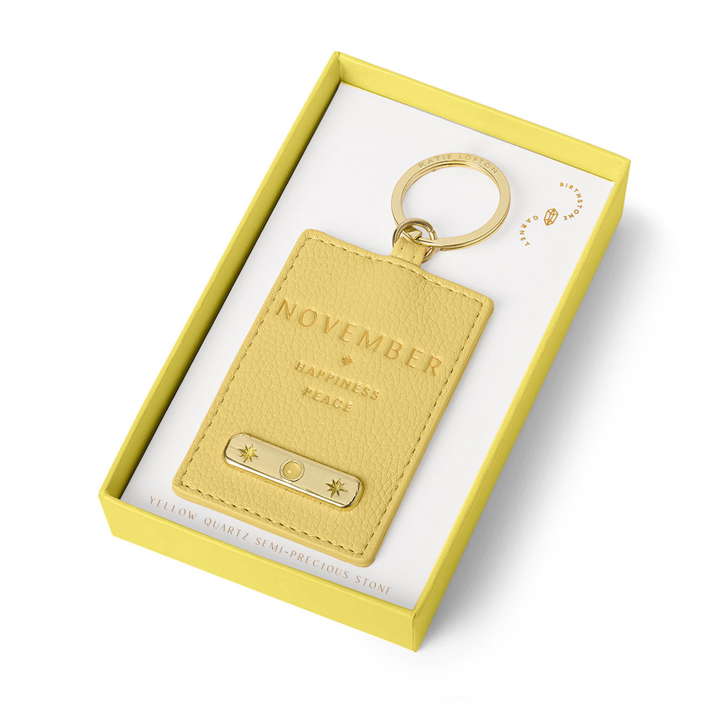 Lovingly crafted from smooth pebble vegan leather and finished with gleaming gold-tone hardware, this boxed keyring showcases a genuine Yellow Quartz — the semi-precious stone known for positivity, clarity, and joy. Thoughtfully designed to reflect the vibrant personality of November birthdays, it’s the perfect gift to uplift and inspire. Beautifully presented with a free gift bag, it’s ready to give and sure to delight. For an extra-special touch, pair with the matching Birthstone Bracelet and Pouch.