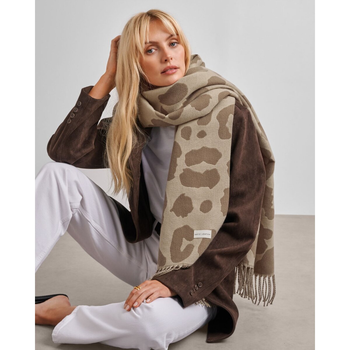 Katie Loxton Large Leopard Printed Blanket Scarf in Taupe and Mocha