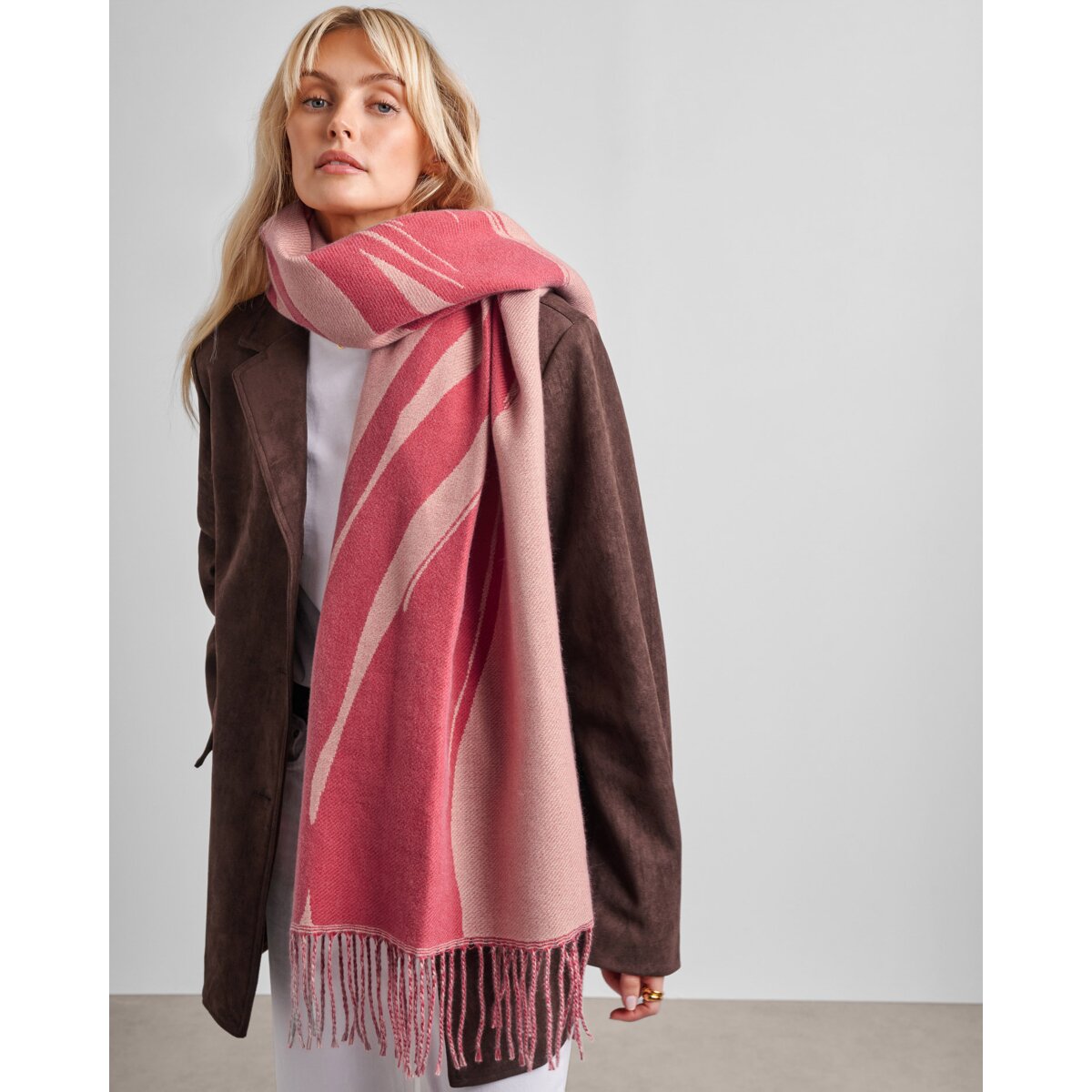 Katie Loxton Oversized Abstract Brush Stroke Printed Blanket Scarf in Pink Raspberry