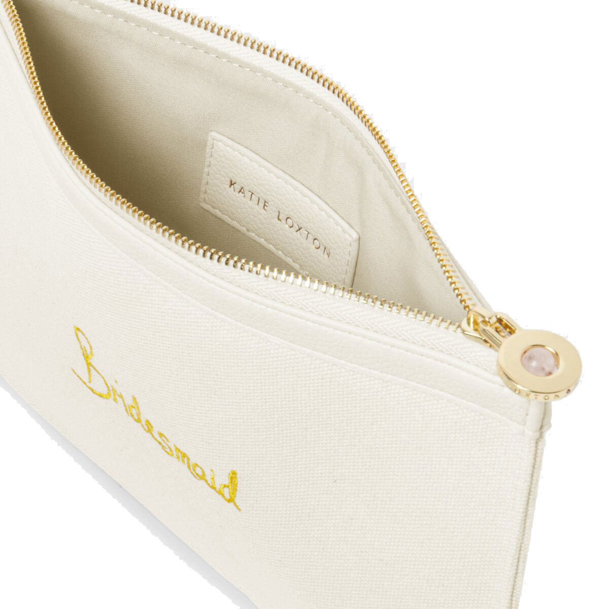 Look no further than our chic Katie Loxton Bridesmaid Bridal Canvas Pouch in off-white.