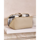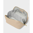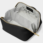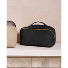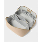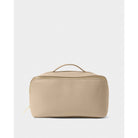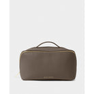 Crafted from smooth pebble vegan leather with a practical wipeable lining, this spacious beauty bag combines elegance with everyday function. The zip-around closure opens fully to lay flat, revealing centre dividers and pockets that make organising your brushes, makeup, and skincare effortless.