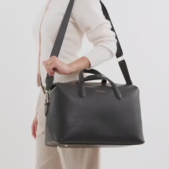 Crafted from smooth pebble vegan leather with a premium RPET lining, this versatile cabin bag is perfectly sized to fit within in-flight cabin allowances. The elegant gold-tone hardware and branded detailing add a touch of sophistication, while the detachable shoulder strap and luggage handle passthrough pocket ensure seamless movement through the airport. Inside, elasticated compartments keep your travel essentials neatly organised, and the clever fold-down sides allow you to adapt capacity to suit your trip.
