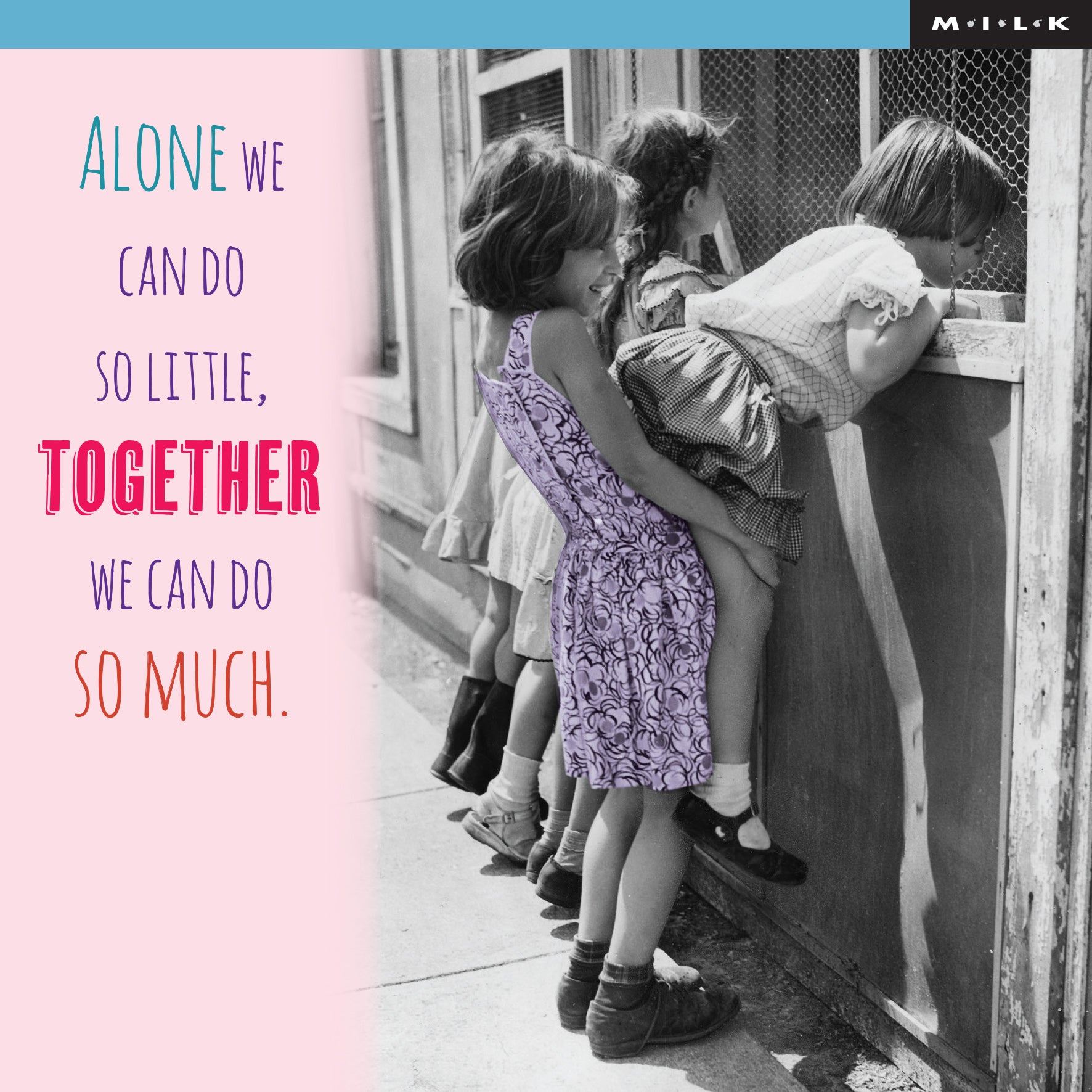 Celebrate the power of teamwork and togetherness with this inspiring M.I.L.K. greeting card.