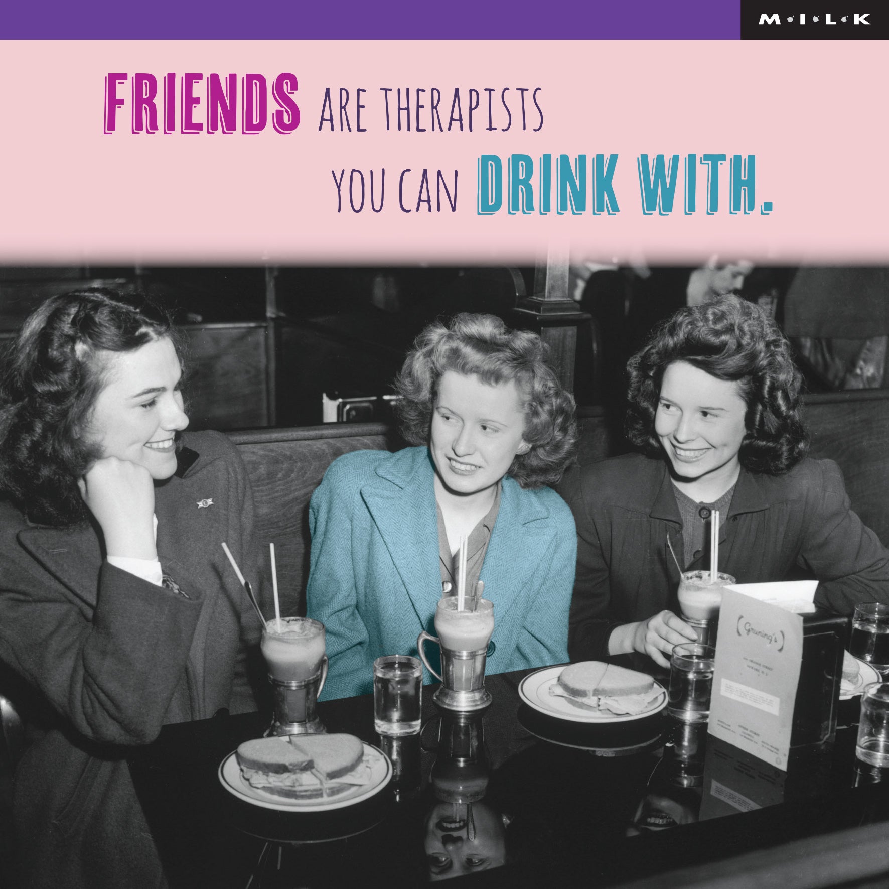 M.I.L.K Greeting Cards - Friends are therapists you can drink with