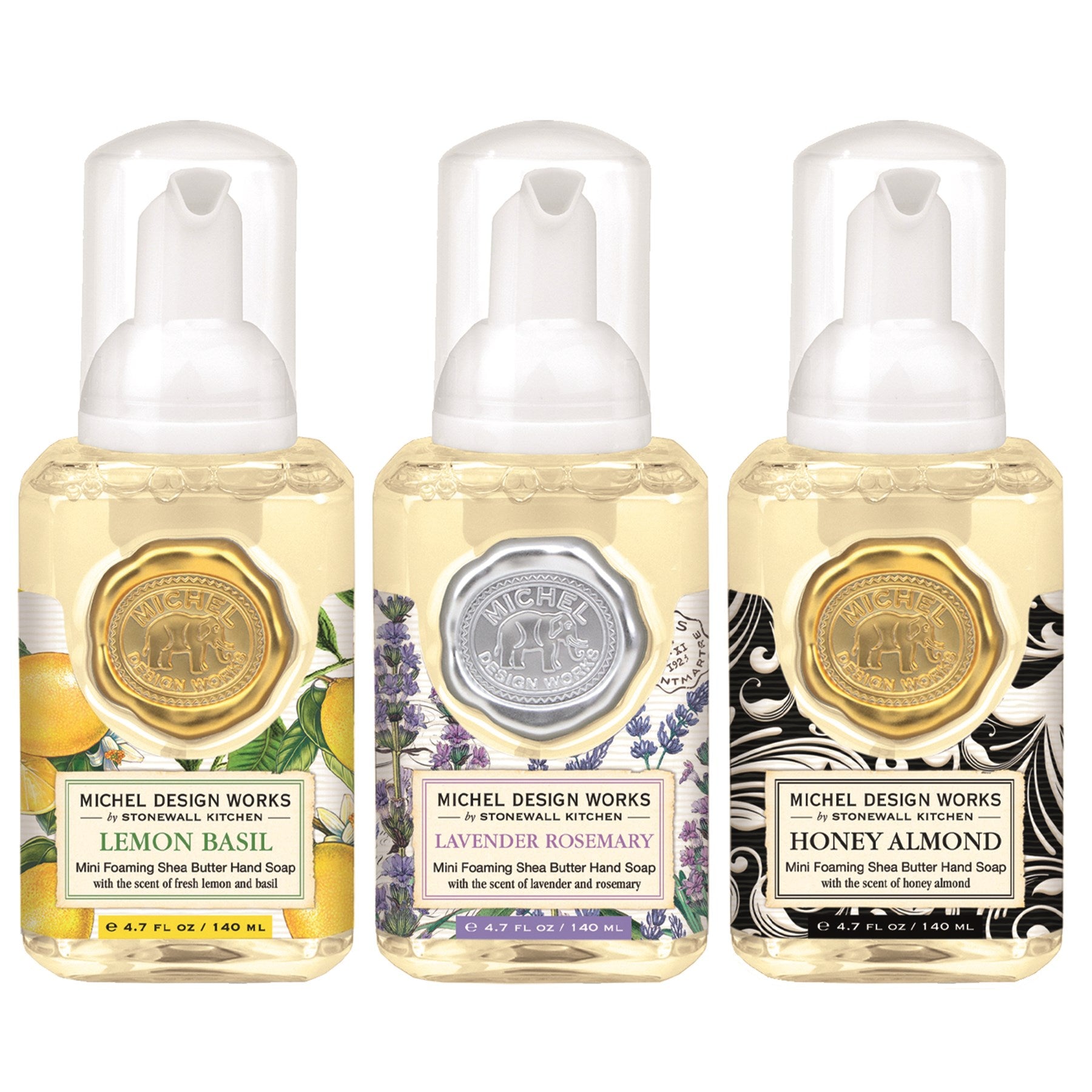 Michel Design Works Mini Foaming Hand Soap Set - Classic - Lavender Rosemary, Lemon Basil, Honey Almond