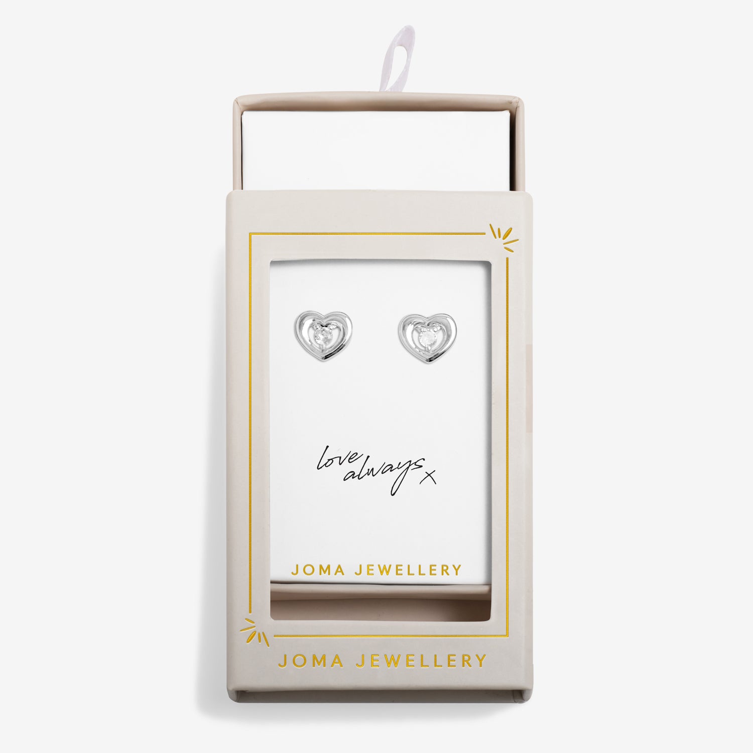 Designed to be worn, cherished and gifted from one heartfelt moment to the next, these elegant stud earrings feature sparkling cubic zirconia heart designs set in silver plating. Finished with sterling silver pins, they’re beautifully presented in a matchbox-style gift box with a ribbon pull and delicate gold foil detailing.