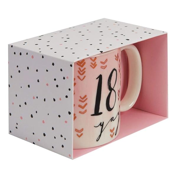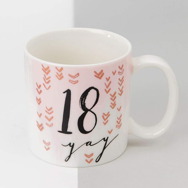A fabulous ceramic mug set with ’18’ design from the Hotchpotch Luxe Collection. This modern and trendy mug makes an ideal birthday gift. The mug is decorated with a Luxe pink patterned design rose gold foil detailing and ’18 yay’ titling. It comes packaged in attractive matching packaging and makes the perfect gift.