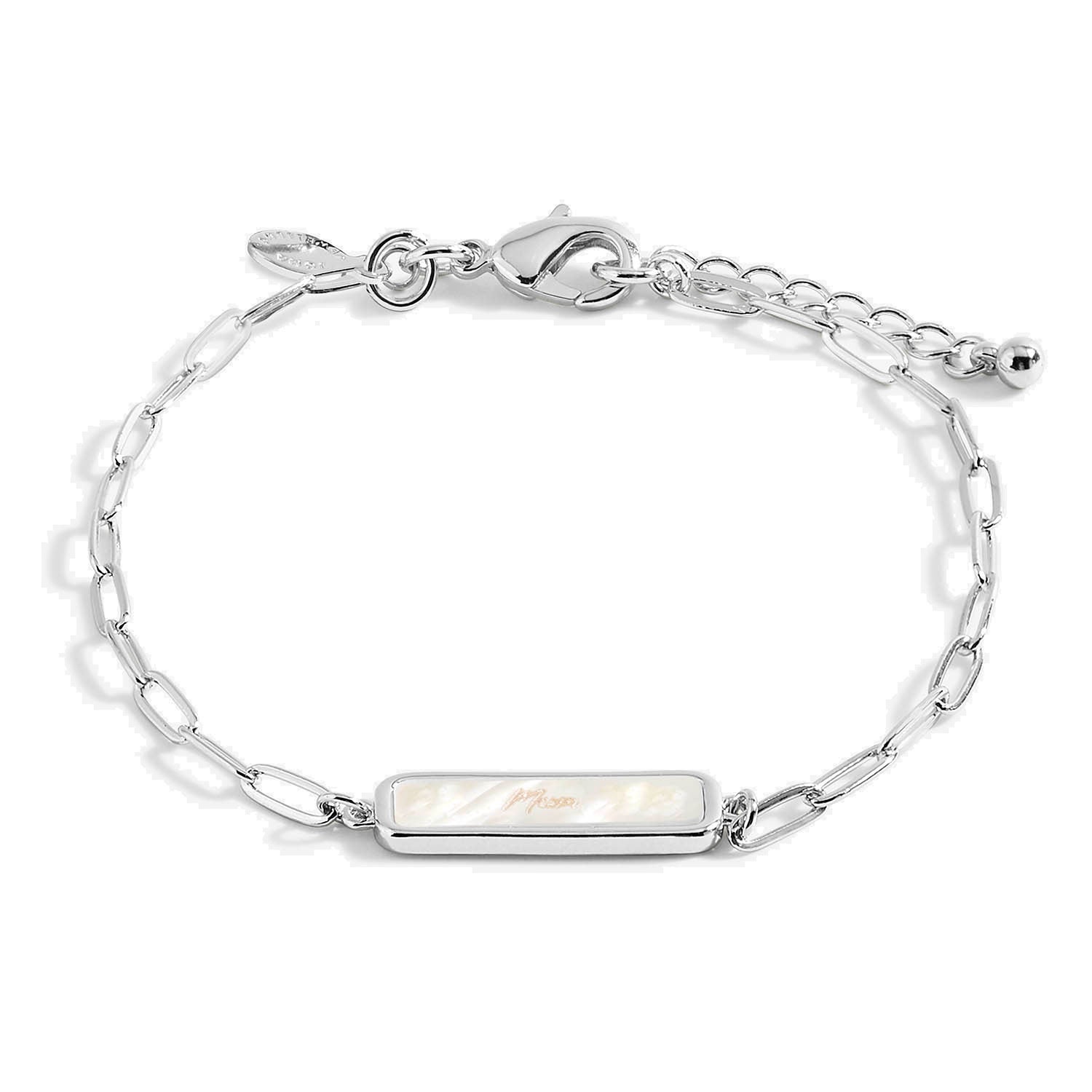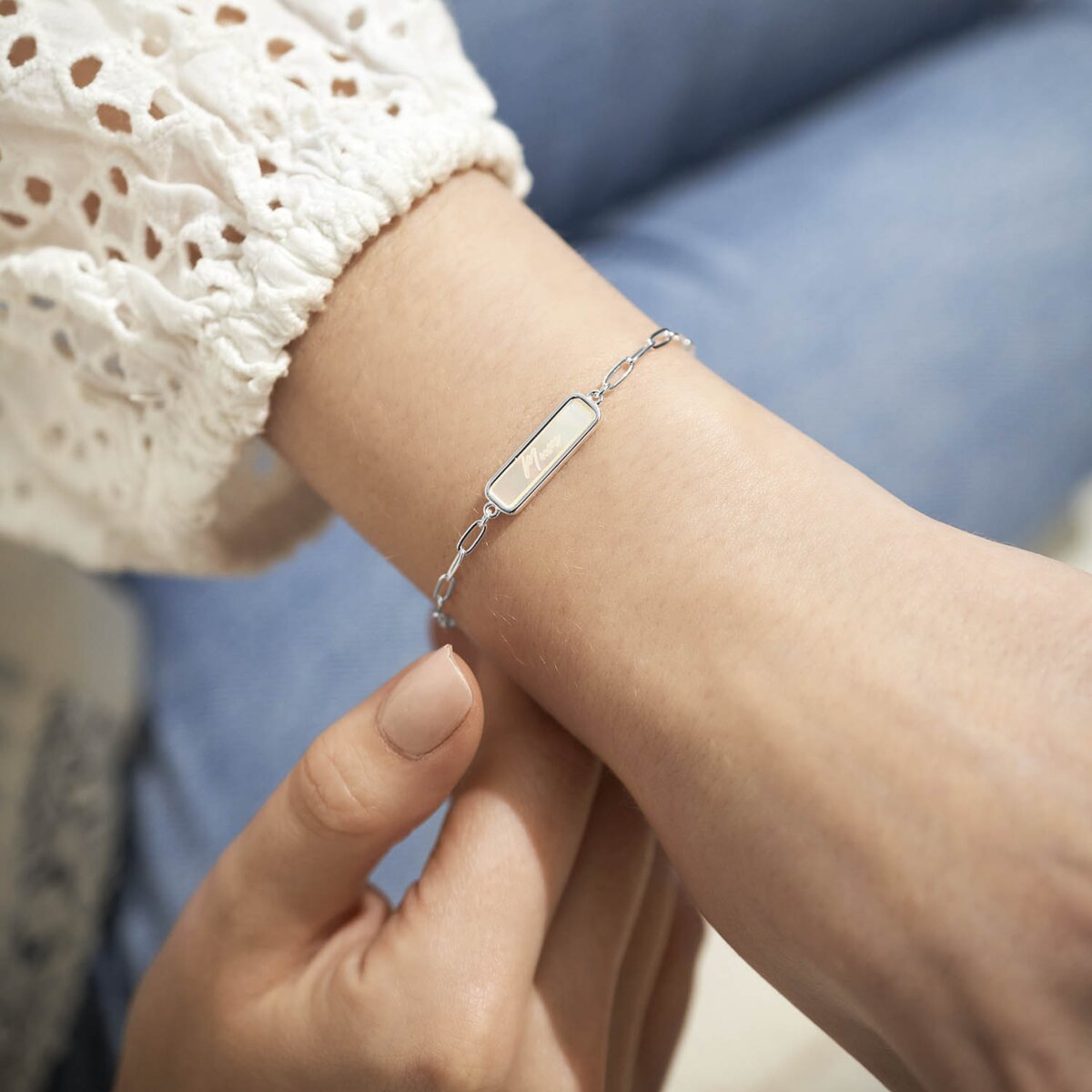Crafted from nickel-free silver-plated brass, the bracelet features a charming mother-of-pearl gemstone (natural, so colour may vary). It's not just jewelry; it's a timeless expression of appreciation.