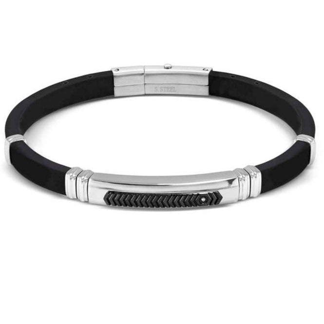 CITY ??ed. ENERGY bracelet in steel, rubber with 1 cz WHITE fin. Steel and Black