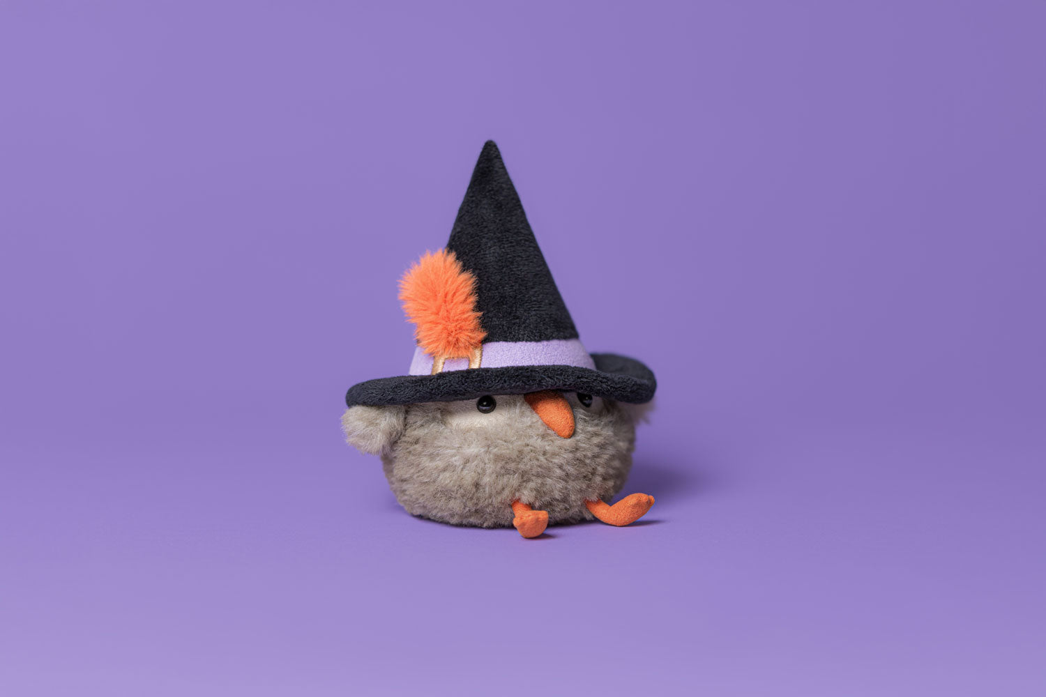 Dressed for mischief and magic, Heccaty is more than just a cuddly companion – she’s a mixologist of mocktails, a bringer of giggles, and the perfect owl to add a touch of whimsy to your festive celebrations. With her soft plush feathers, twinkling eyes, and theatrical charm, this bewitching friend makes a spellbinding gift for little ones and grown-ups alike.