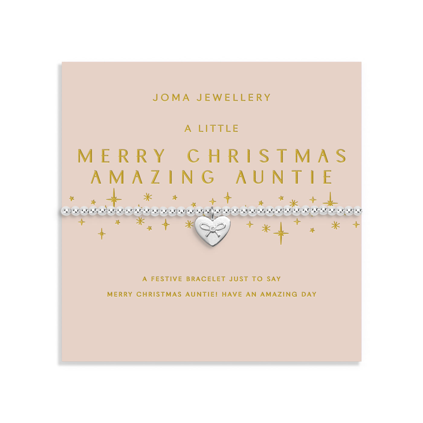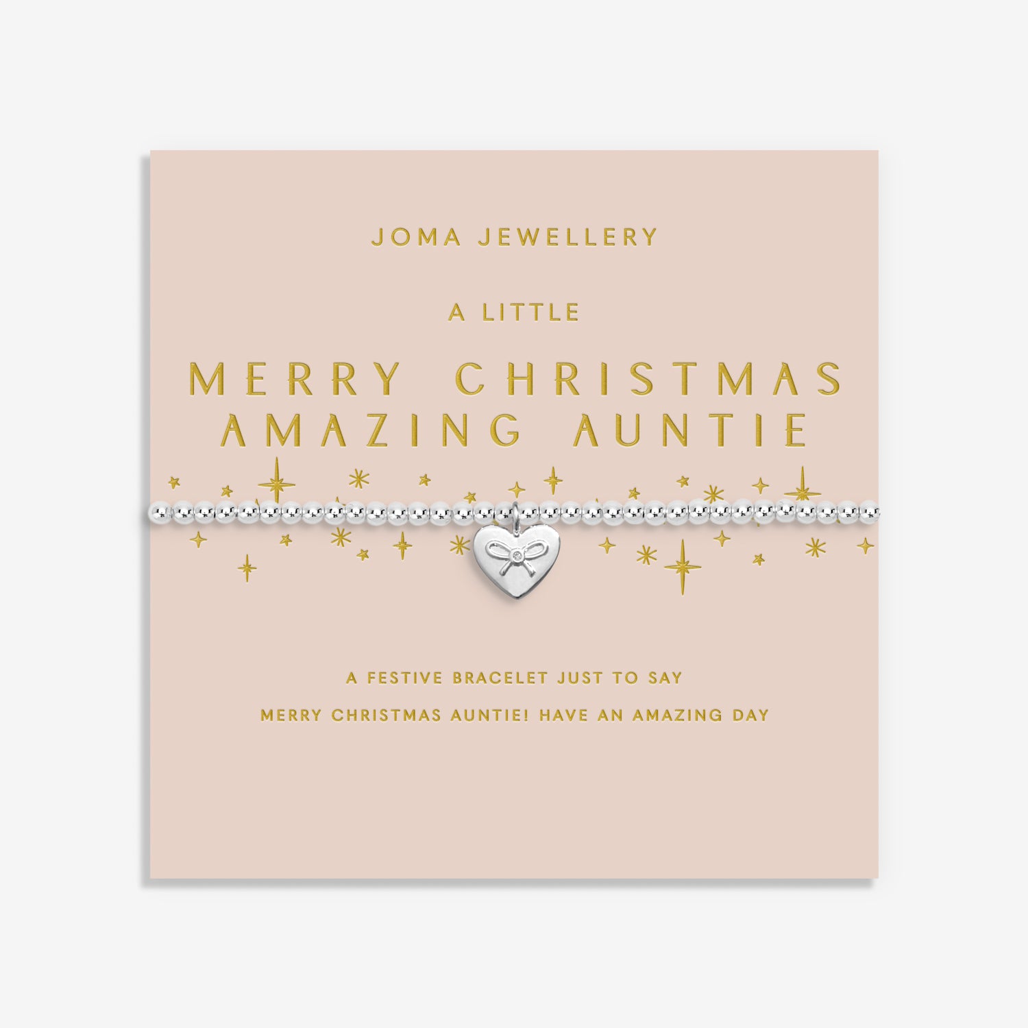 Joma Jewellery Christmas A Little | Merry Christmas Amazing Auntie | Silver Plated | Bracelet | 17.5cm Stretch