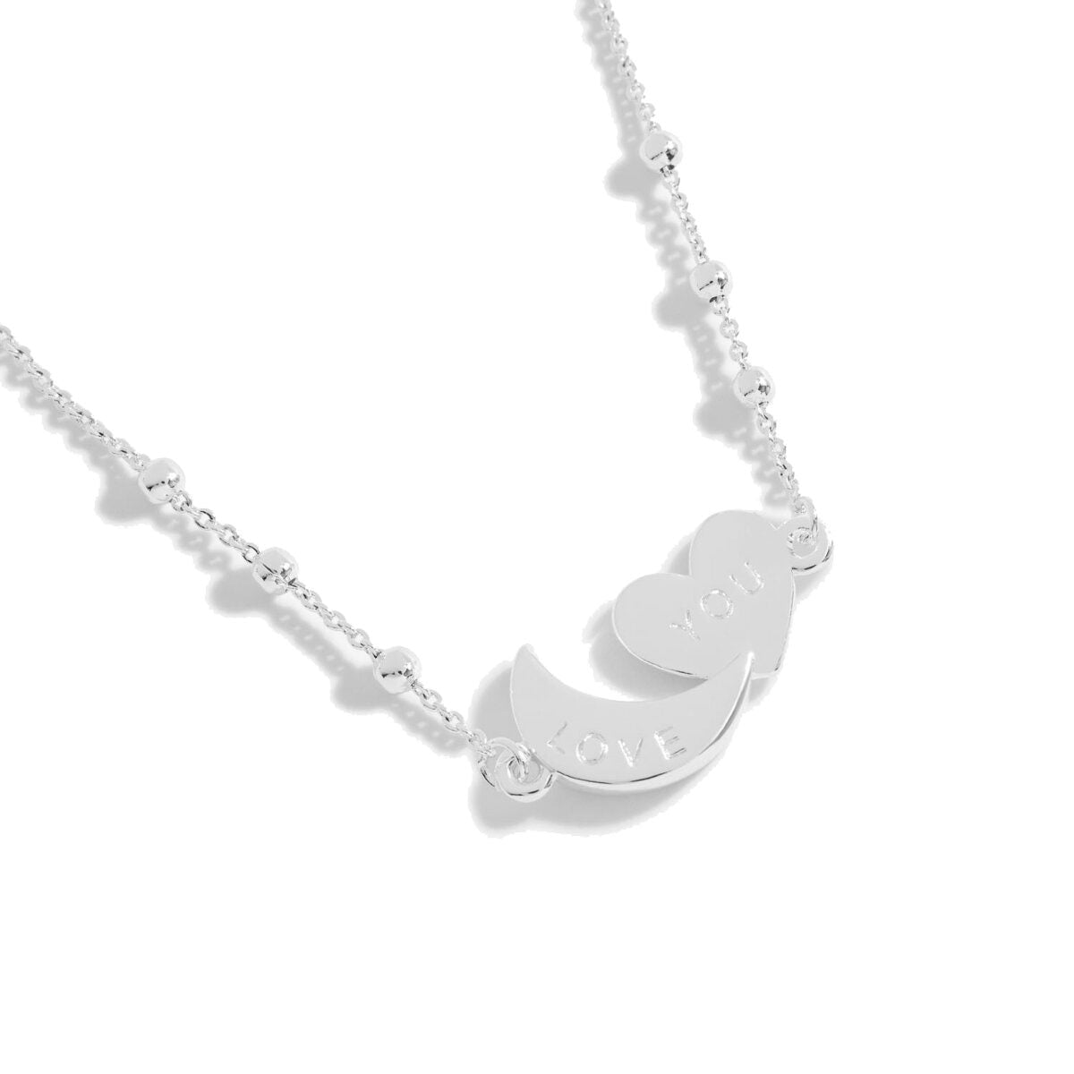 Share a timeless expression of love with our Joma Jewellery Forever Yours 'Love You To The Moon And Back' Necklace in Silver Plating.
