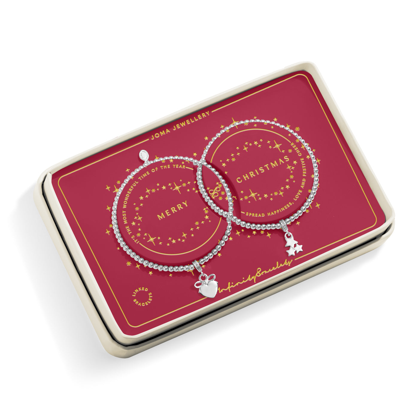 Joma Jewellery Infinity Bracelets | Merry Christmas | Silver Plated | Linked Bracelets | 17.5cm Stretch