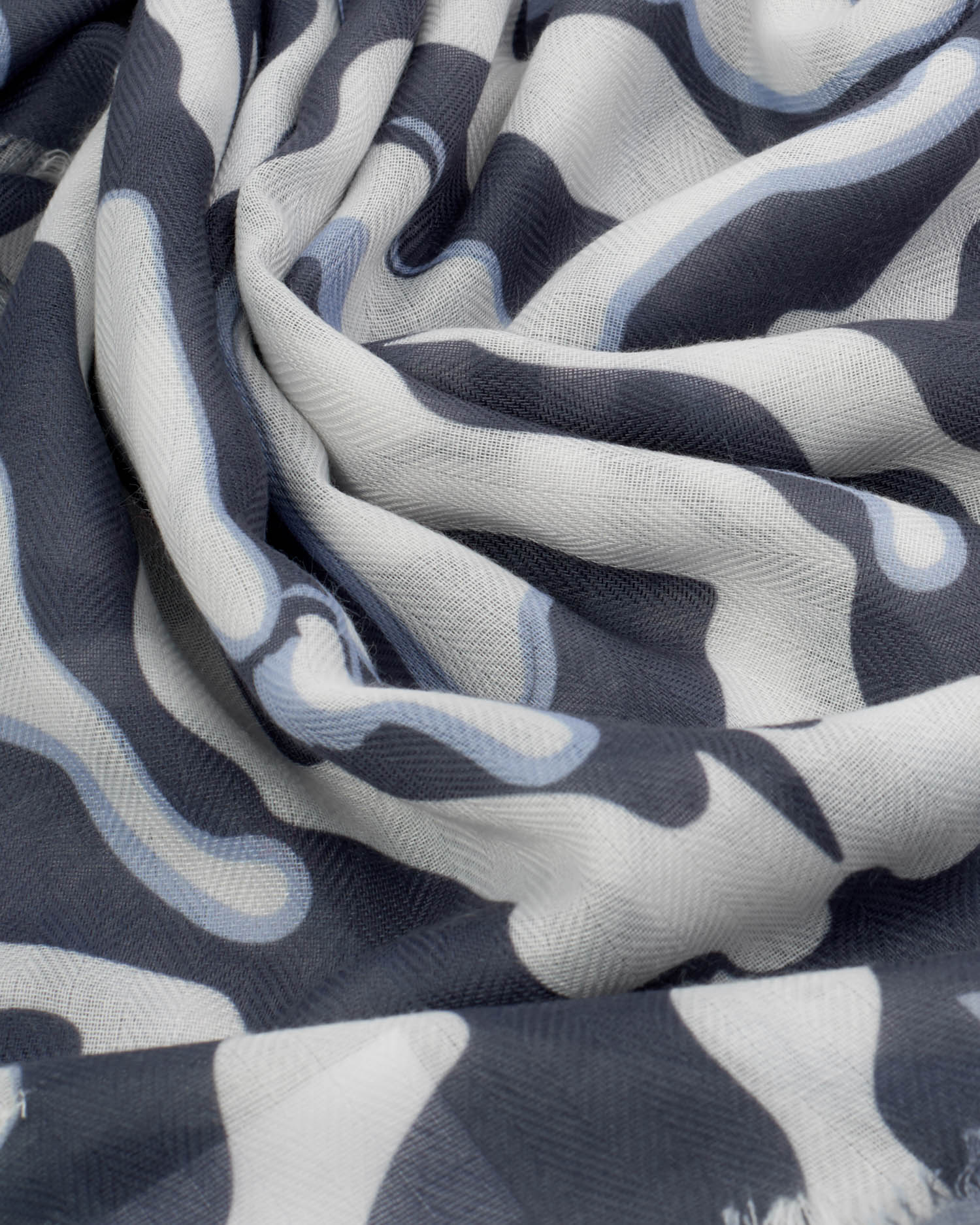 Bring a touch of timeless elegance to your wardrobe with the Katie Loxton Kaleidoscope Printed Scarf in white and navy.