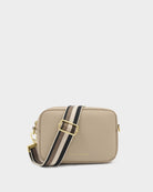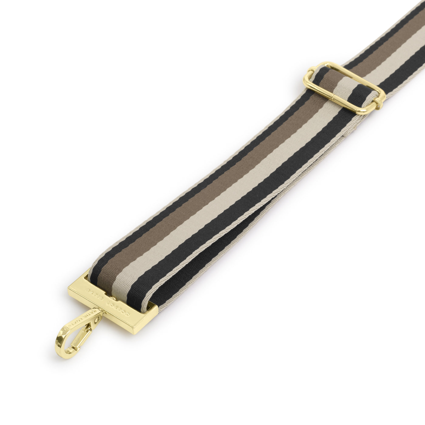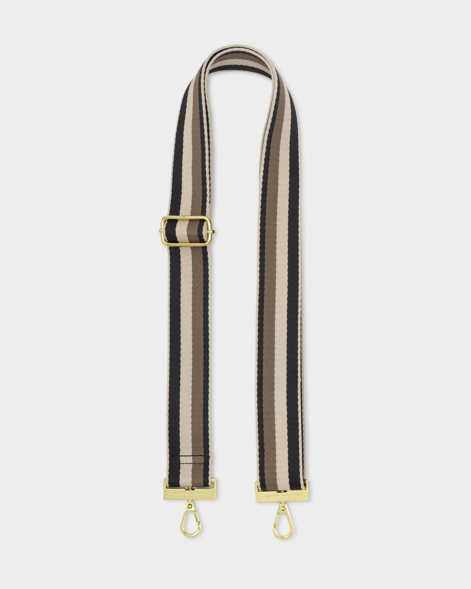Katie Loxton Stripe Canvas Bag Strap in Black and Mocha
