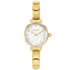 Stainless steel Time Yellow PVD coloured watch with case in White Mother of Pearl and Cubic Zirconia detail. It is possible to personalise the bracelet strap of the watch with Original Composable® Classic Links. Choose to wear this timelessly elegant accessory.