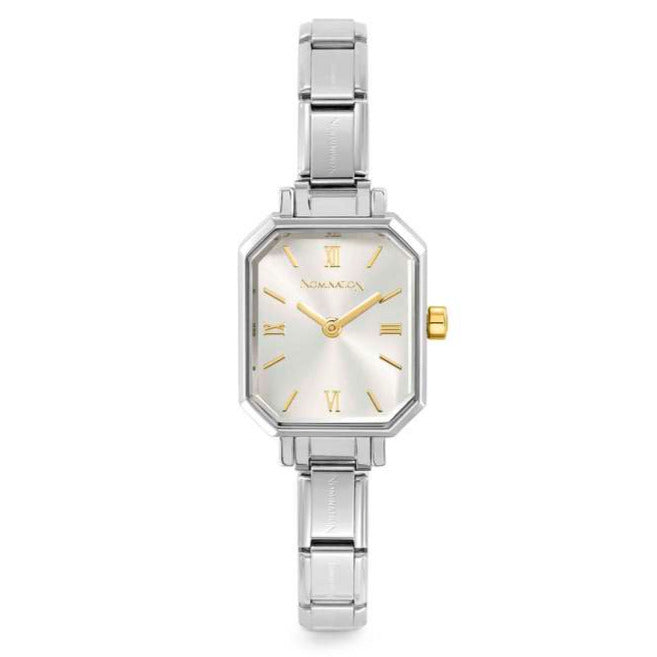 Time watch compatible with Links from the Composable® Collection. Made in stainless steel with Sunray Silver coloured dial with Yellow PVD coloured details. Time watches can be personalised with Original Composable® Classic Links. Time passes, the hands on a clock spin round and round but this watch is timelessly beautiful and will be your forever favourite.