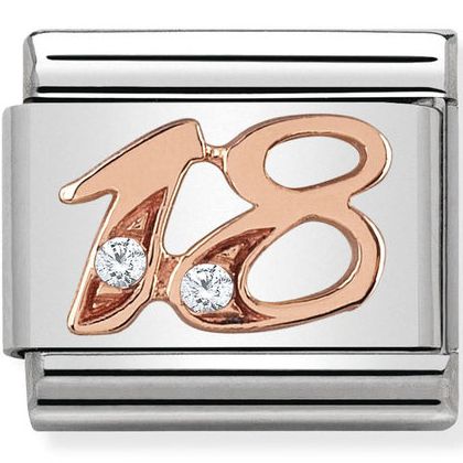 430315/18 Classic NUMBER 18 steel zircon & 9ct Rose gold