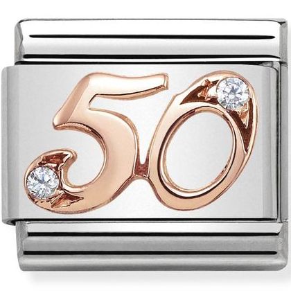 Original Nomination Composable Classic Link for Composable bracelet in stainless steel with bonded rose gold number 50 with Cubic Zirconia symbol. This precious Link is the perfect gift idea for yourself or someone else for a special Birthday. Choose the beauty of details to celebrate a milestone year for someone you love!