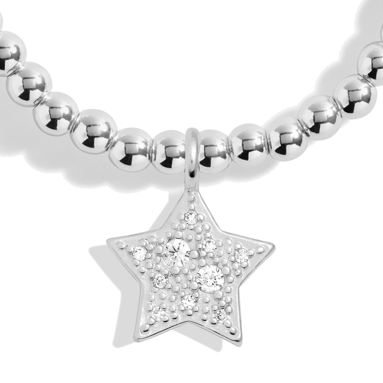 This adorable beaded A Little Bracelet for smaller wrists is crowned with a sweet silver-plated star charm and can be found nestled inside its festive starburst-print cracker packaging.