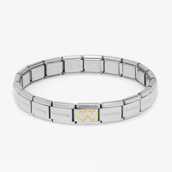The Double Heart Link is an ideal choice for anyone looking to personalise their nomination classic bracelet with a meaningful symbol of love. Its elegant design and timeless appeal make it a charming reminder of affection, perfect for celebrating special relationships or commemorating cherished moments.