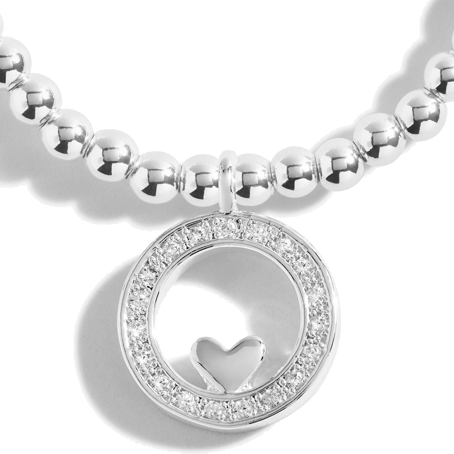 Featuring a stretch-bead style and a sparkling silver circle-shaped charm, wrapped around a stylised card and framed by a sweet poem.