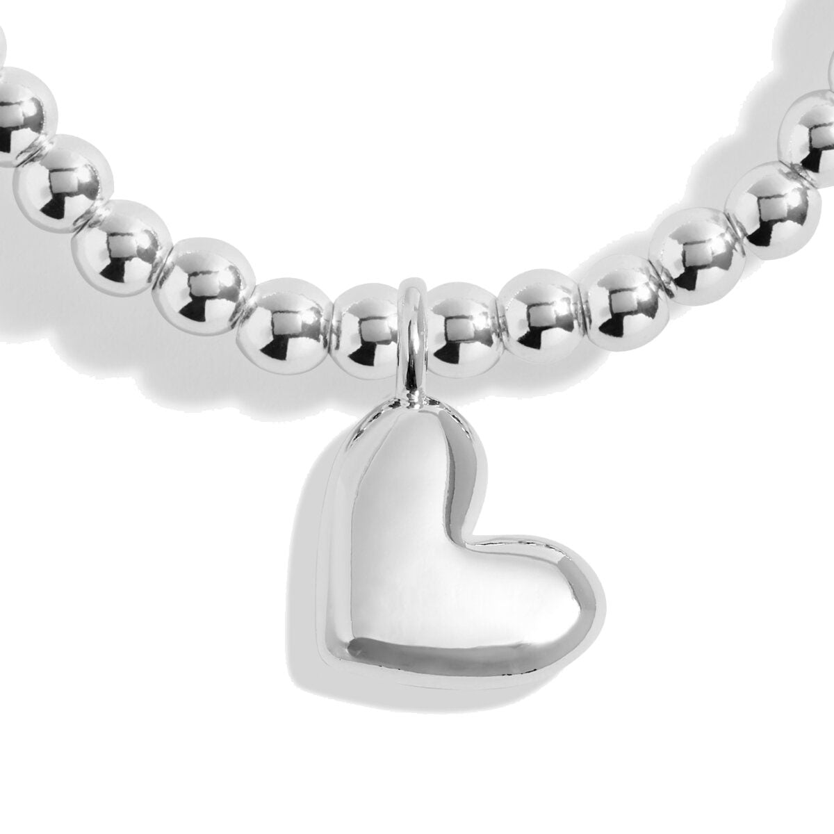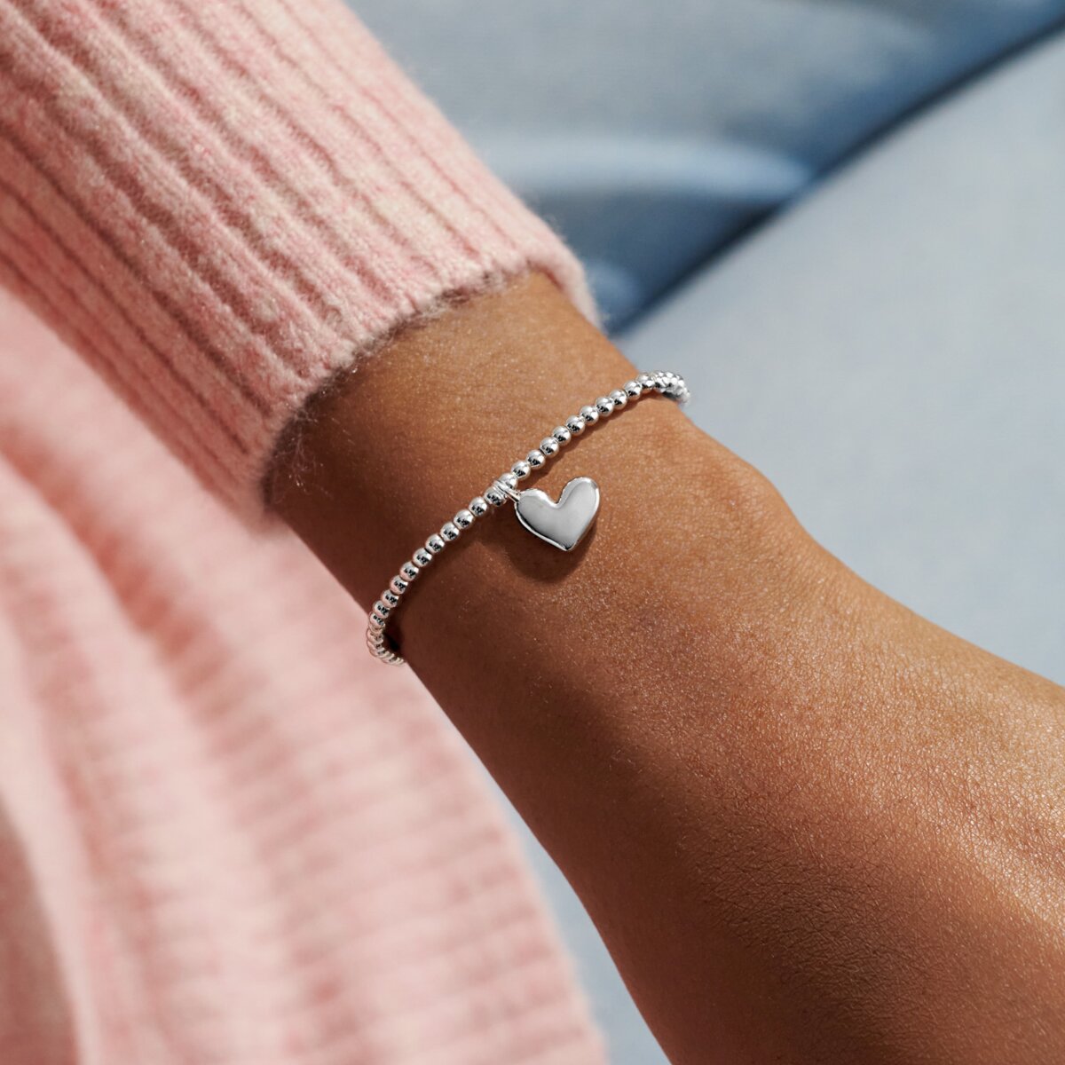 This exquisite bracelet features Joma's classic beaded design, a shining heart charm, and is framed with a golden sentiment, making it the perfect 'just because' treat. The bracelet is silver-plated and comes in a cream heart-shaped gift box, ensuring it is considered one of the most precious of gifts.