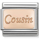 This classic bonded rose gold engraved plate cousin link is the perfect way to celebrate the special bond you share with your family. Ideal for a nomination classic bracelet, it captures the warmth and connection of family ties, making it a thoughtful and personal charm to include in your collection.