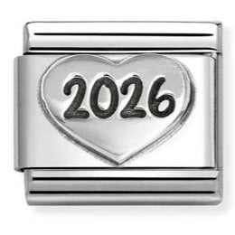 Original Nomination Composable Classic Link for Composable bracelet in stainless steel with silver Heart and 2026 vintage effect. Choose this Link to capture all the special memories the year will bring.