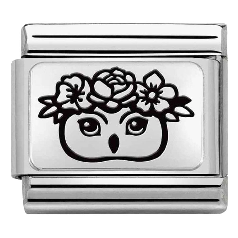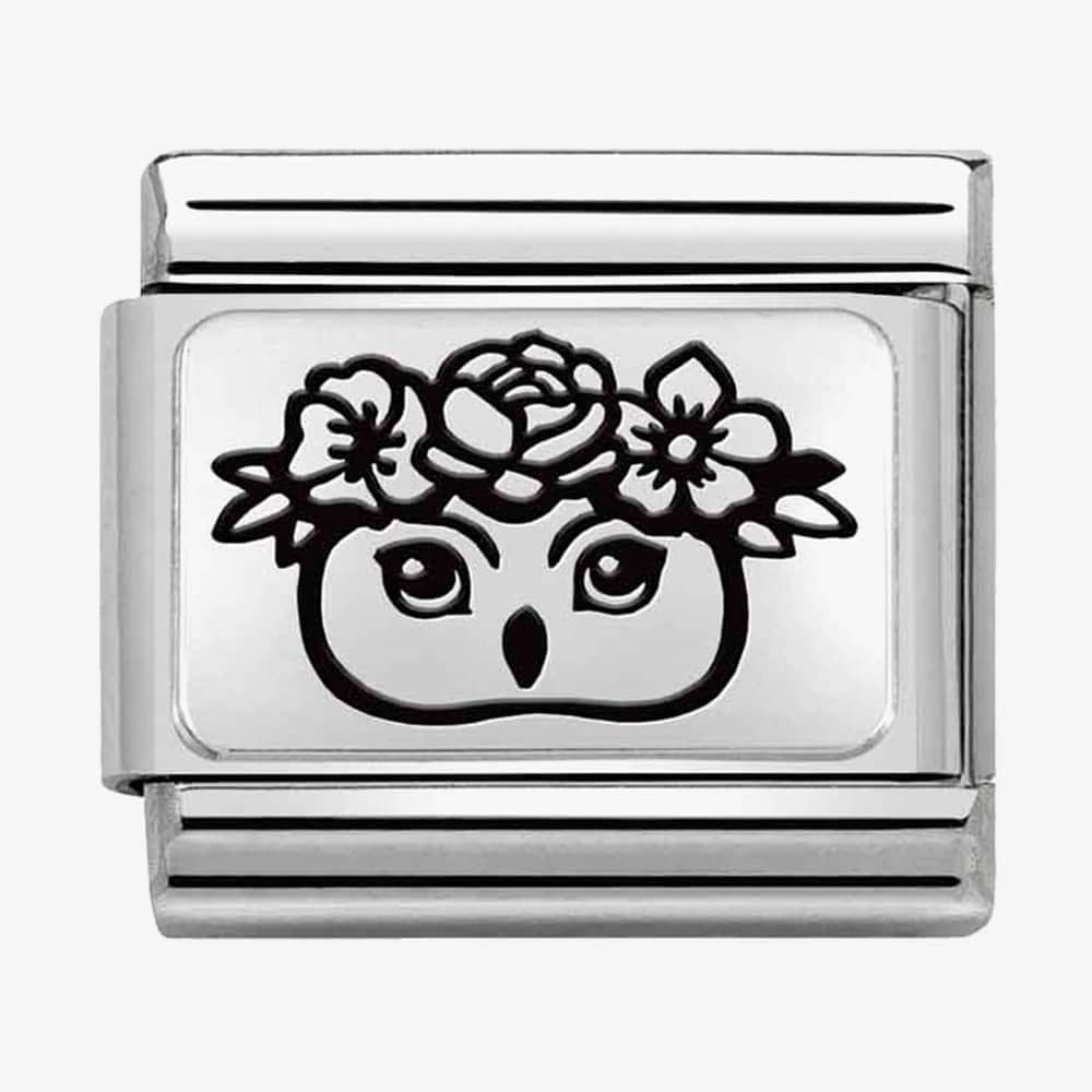 Embrace wisdom and natural beauty with the Nomination Composable Silvershine Classic Owl with Flowers Charm Link.