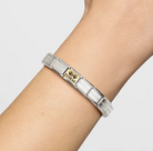 Nomination Italy classic Gold collection is a unique modular composable series. Links blend stainless steel with 18k gold elements, including enamel, semi-precious stones, and cubic zirconia. Design your Bracelet with names, occasions, and meaningful symbols.