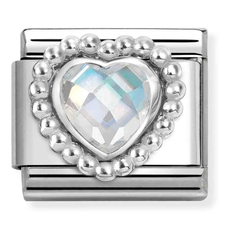 The Faceted Heart Charm is the perfect addition to any nomination classic bracelet, offering a delicate blend of elegance and timeless style. Its intricate dot-rich setting and sparkling white cubic zirconia stones capture attention while complementing the classic link size flawlessly.