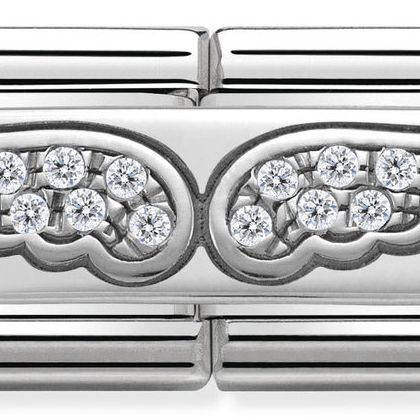 Elevate your Nomination Composable Classic Bracelet with this charming double link design, which brings a subtle yet captivating glow to your wrist. Whether worn alone or alongside other charms, it adds an enchanting detail to any look with ease.