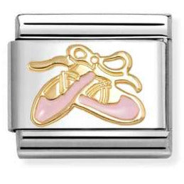 Classic Yellow Gold Charm With Pink Enamel Dance Shoes