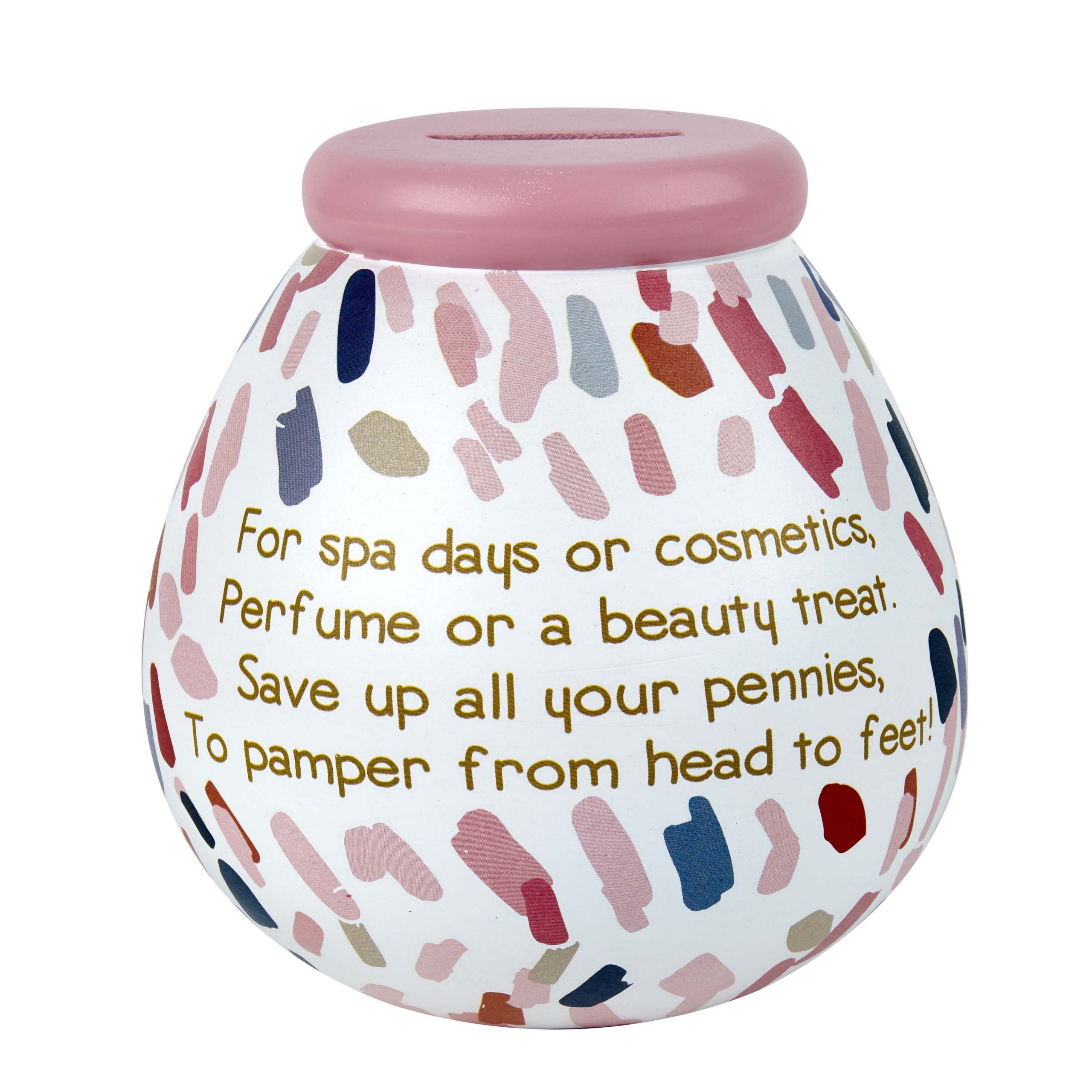 “For spa days or cosmetics, perfumes or beauty treat. Save up all your pennies, to pamper from head to feet.”
