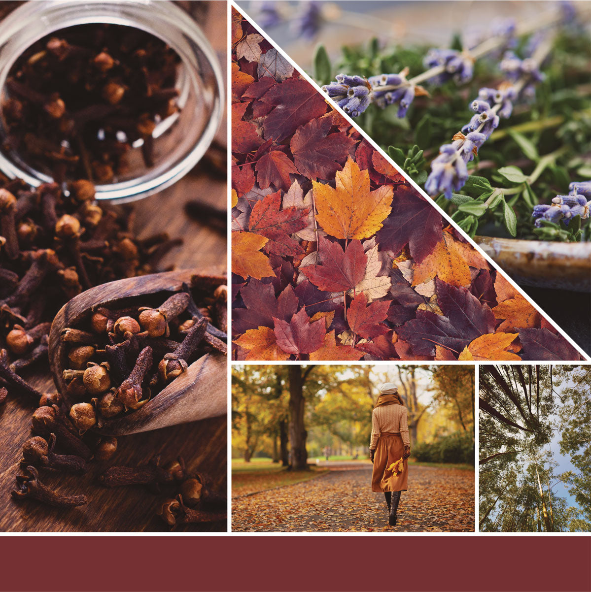Spend the perfect autumn day strolling tree-lined streets with the scents of clove, lavender, balsam, and eucalyptus woods