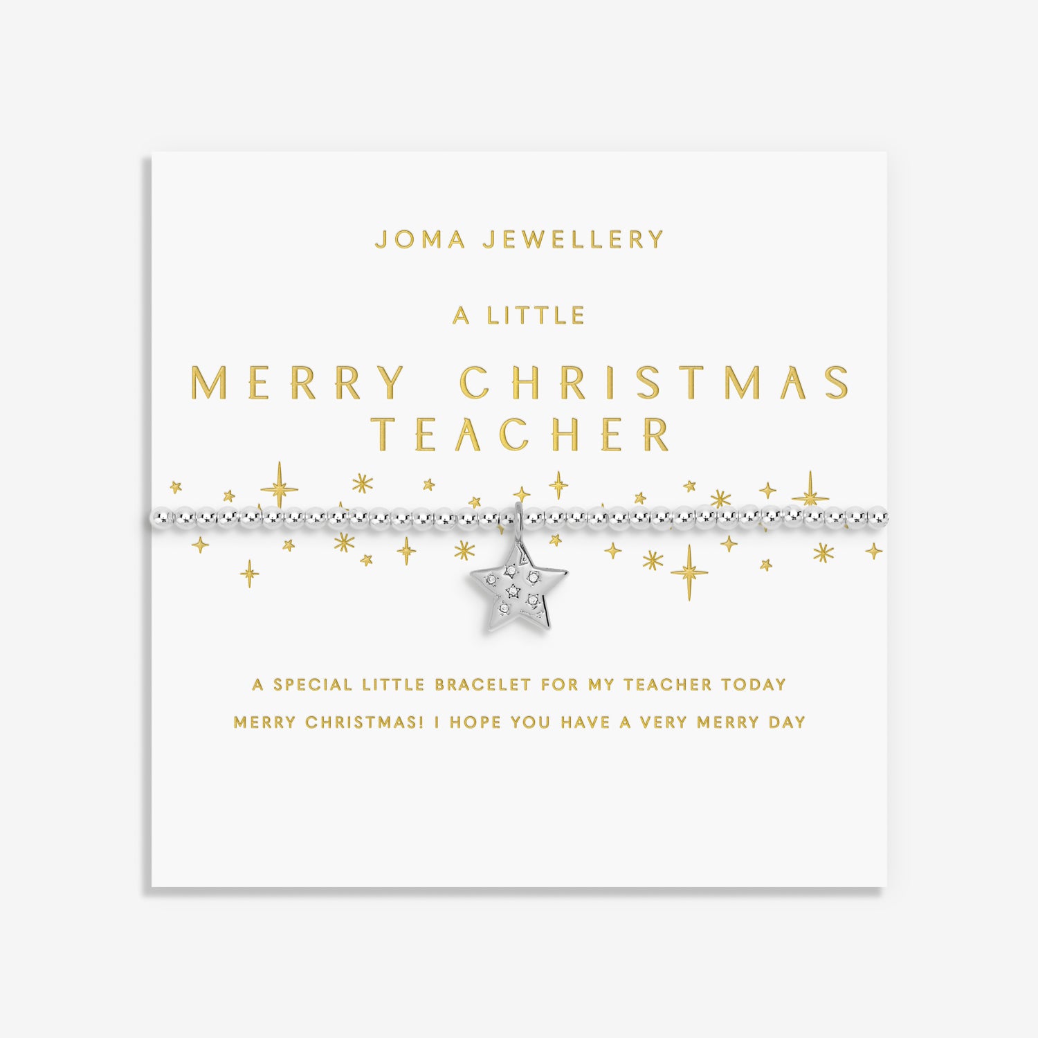 Joma Jewellery Christmas A Little | Merry Christmas Teacher | Silver Plated | Bracelet | 17.5cm Stretch
