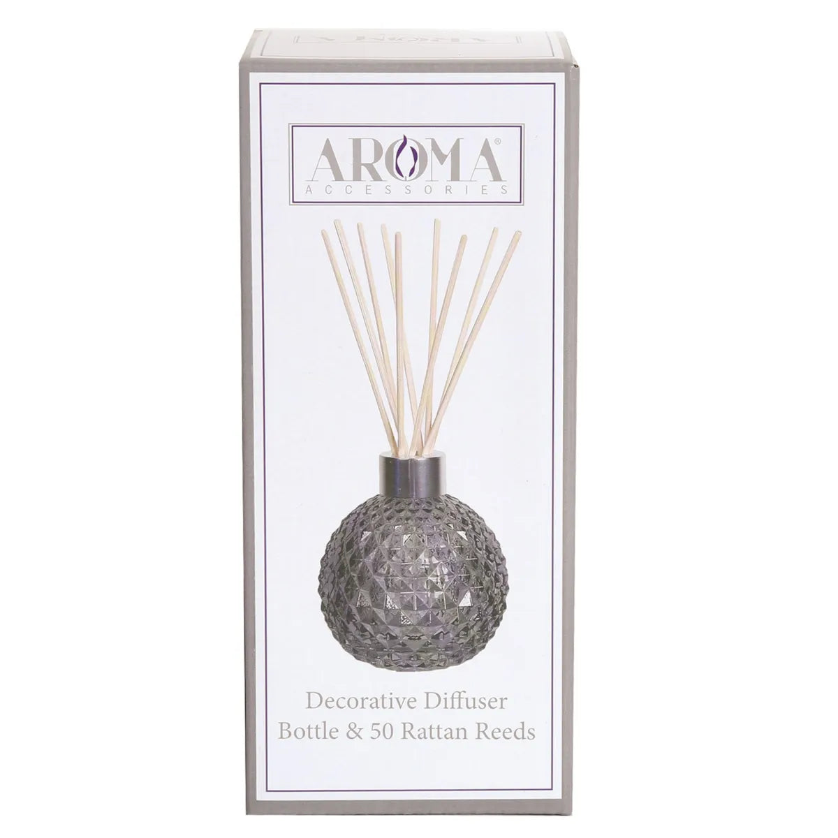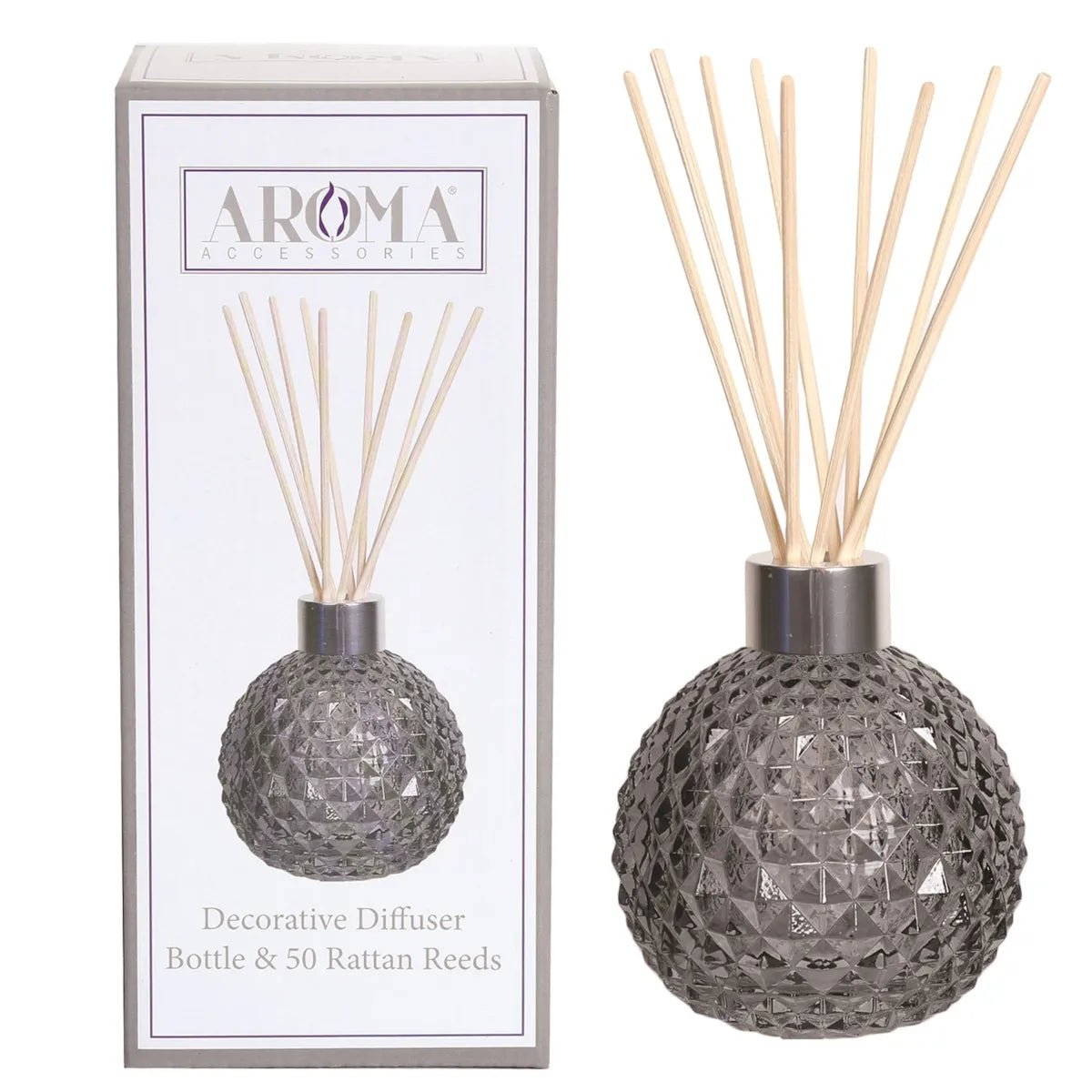 Add a touch of elegance to your home fragrance routine with the Grey Lustre Glass Decorative Reed Diffuser & 50 Rattan Reeds from Aroma Accessories. This stylish diffuser set includes a beautifully textured, translucent grey glass holder that adds a subtle, sophisticated accent to any interior.