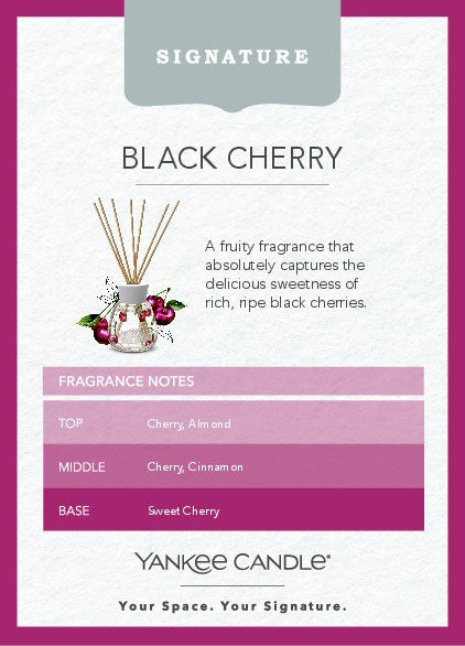 For continued enjoyment, diffuser refills and replacement reeds are available separately. Experience the joy of ripe black cherries with the Yankee Candle Black Cherry Reed Diffuser.