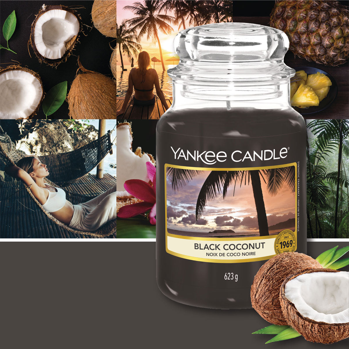 Escape to an island paradise with the Yankee Candle Black Coconut Classic Large Jar.