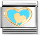 This charming heart in heart design combines stainless steel and 18k gold with striking blue enamel, making it an exquisite addition to any Nomination classic bracelet. Its timeless appeal and rich colour palette align beautifully with the elegance and versatility expected of a composable charm.