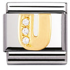 030301/21 Classic LETTER U ,S/Steel,Bonded Yellow Gold,CZ