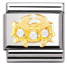This charming link captures the essence of the Cancer zodiac with its elegant design and high-quality materials. Made in Italy, it combines stainless steel with bonded yellow gold and features a sparkling CZ detail, creating a unique piece that celebrates personal identity.