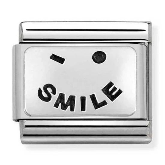 Brighten your bracelet and your day with the Nomination Composable Classic Silvershine Smile Charm Link.