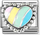 This Classic Silvershine Heart Link is the perfect choice for anyone looking to personalise their Nomination Composable bracelet with a touch of colour and elegance. Featuring a delicate pastel striped heart design, it brings a subtle yet charming accent that complements everyday wear beautifully.