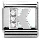 The Nomination Letter K charm is crafted from sterling silver and set on a bed of stainless steel, with cubic zirconia detail. This is a great way to personalise and make your bracelet unique to you. Use this as an initial or add more letters to create a name, either way this is an absolute must-have in your composable collection.