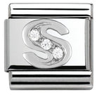 The Nomination Letter S charm is crafted from sterling silver and set on a bed of stainless steel, with cubic zirconia detail. This is a great way to personalise and make your bracelet unique to you. Use this as an initial or add more letters to create a name, either way this is an absolute must-have in your composable collection.
