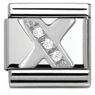 The Nomination Letter X charm is crafted from sterling silver and set on a bed of stainless steel, with cubic zirconia detail. This is a great way to personalise and make your bracelet unique to you. Use this as an initial or add more letters to create a name, either way this is an absolute must-have in your composable collection.