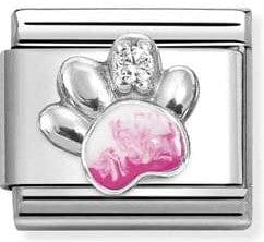 330321/13 Classic SIMBOLS stainless steel, enamel, Cub. Zirc and 925 sterling silver Paw pink WHITE